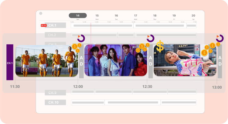 Cultivate additional revenue for your content by integrating localized and personalized ads into the FAST channels on different media platforms.